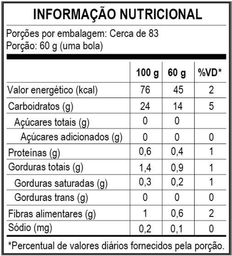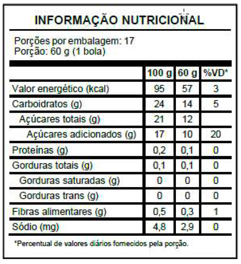 Polpa de açaí, água, maltodextrina, maltitol, estabilizantes: goma guar e goma xantana,