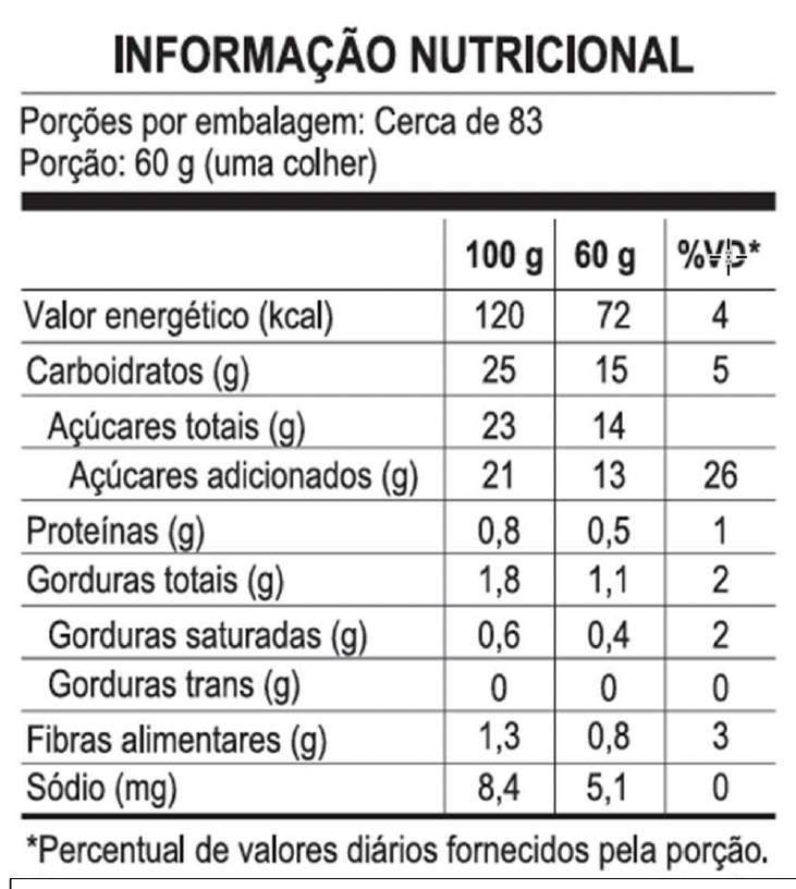 Pulpa de Açaí orgânico 85%, azúcar moreno demedara orgânico, espesante, goma guar (INS 4112) ,goma xantana (INS 416), carboximetilcelulosa sodica (INS466).